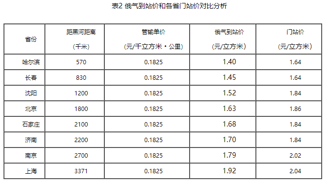 一 俄罗斯进口管道气价格与当地门站价格对比分析