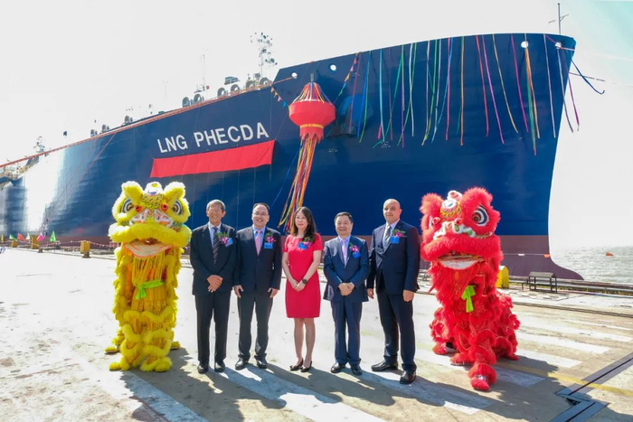 “新船教母”、中远海运能源运输股份有限公司上海LNG党总支书记林楠,商船三井大中华区总代表、商船三井(中国)有限公司董事长德元仙治,中远海运能源运输股份有限公司上海LNG总经理丛剑,商船三井大中华区技术总监加藤英二,上海中远海运液化天然气投资有限公司常务副总经理郑祖荣,新船船长克里斯托夫·詹森斯基,GTT中国区总经理安南·艾扎侯尼,劳氏船级社大中华区总裁薛茂根,中国船级社上海分社副总经理唐敏杰,中船贸易公司副总经理吴爱军,沪东中华造船(集团)有限公司副总经理迟本斌等各界嘉宾共计90余人出席本次命名仪式,共同见证新船命名。仪式上,林楠女士为新船命名砍缆。