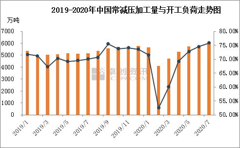 卓创数据统计,2020年7月,中国常减压装置加工总量6100.75万吨,环比上涨6.08%,同比上涨17.89%。7月份主营炼厂原油加工量为4009.36万吨,独立炼厂原油加工量为2091.39万吨。自5月份以来,中国原油加工量就保持着较高水平,尤其是独立炼厂的加工量出现了较大幅度上涨。其中主要有以下几个原因: