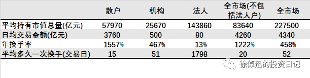 通过这张图可以计算出各类账户的平均换手情况,如果按照每年240个交易日计算,各类账户的换手情况如下: