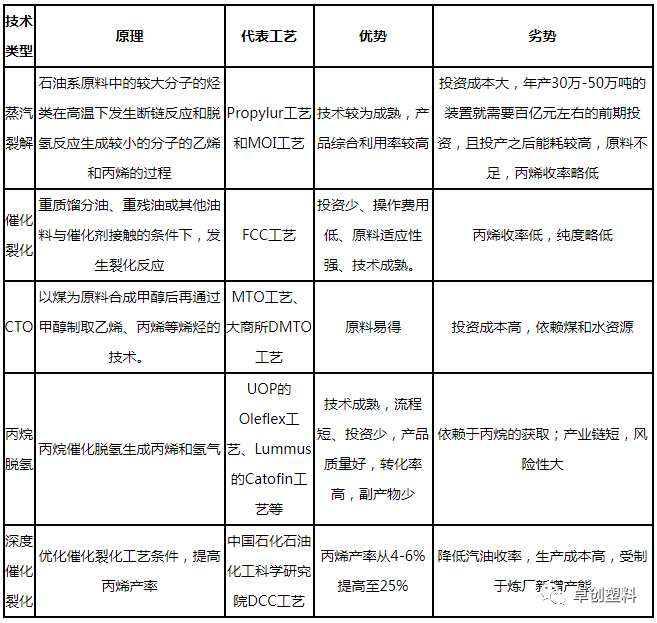 不同丙烯工艺技术类型优劣势对比