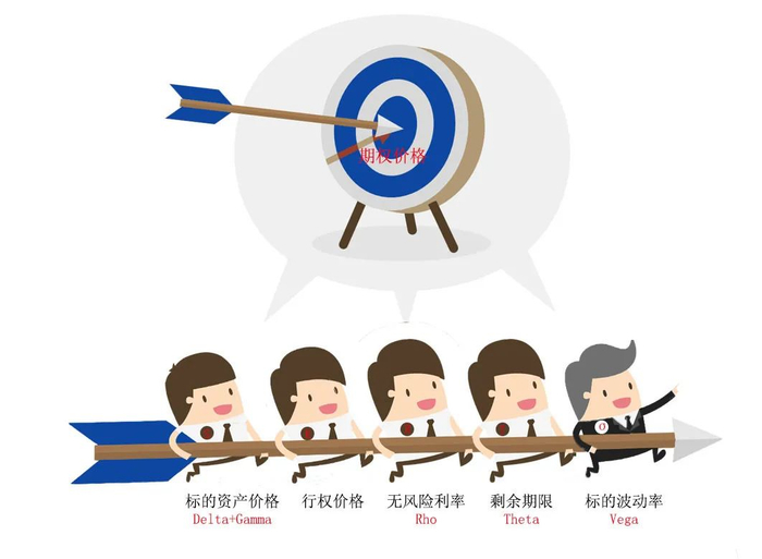 第一、期权定价五要素:标的资产价格、行权价格、无风险利率、期权剩余期限和标的资产的波动率。
