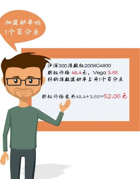 小方:希腊字母“五兄弟”之间实力不一样、影响力也不一样,他们的话语权也是不一样的,他们之中我认为波动率是期权的灵魂,是当之无愧的大哥。期权价格面临的波动率风险就是希腊字母Vega。这个值越大,说明期权的价格受到波动率变化的影响也就越大。Vega的一般定义是波动率上跳一个百分点,期权的价格理论上涨的金额。