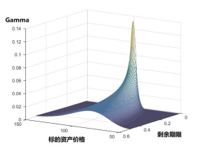 小方:Gamma对于期权多头是一个“好好先生”,标的涨时“期权涨得快”,标的跌时“期权跌得慢”,一切都是他的功劳。但如果是期权空头就比较棘手了。Gamma会变成一个“顽皮小子”,变成标的涨时“期权涨得慢”,而标的跌时“期权跌得快”。而且研究表明平值期权且到期时间很短的时候,Gamma会大幅突增,祭出“大头针”暗器,伤期权空头持有人于无形。