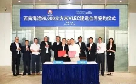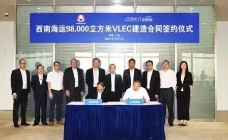 SHPGX导读:浙江卫星石化在国内船厂订造的两艘VLEC订单正式敲定,实现卫星石化“国船国造”的承诺。9月9日,卫星石化、西南海运、江南造船、美国船级社等共同在中国船舶集团旗下江南造船举行98000立方米超大型乙烷乙烯运输船(VLEC)签约仪式。