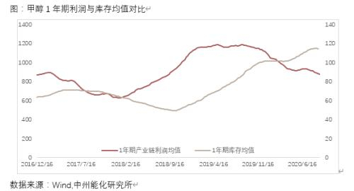 我们将甲醇的港口库存1年期均值于甲醇产业链利润的1年期均值进行比较,发现在过去4-5年的时间,利润均值和库存均值都出现了显著的趋势性,且利润的变化更领先于库存的变化,大约领先三个季度左右。而长周期库存的拐点大致对应到长期的价格拐点,从这个角度来说,跟踪长周期的库存与利润变动是很有意义的,比如利润从下降趋势转为扩大,那么可以预期到未来库存的拐点将会出现,且现在虽然出现了供需好转的因素但还没有累积到足够的程度扭转整个供需的结构。这能够帮助我们从长周期发展趋势上认清现实并提高未来的确定性。