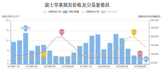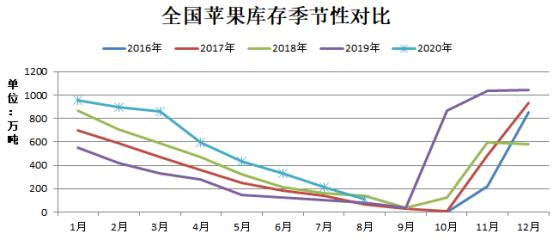 据以下全国苹果库存图可见,2020年中,3月、5月及7月冷库苹果去库速度相对明显,而批发市场价格均同步处于偏低水平,远低于往年同期价格。除了受清明、五一等节日需求旺季的刺激之外,还有一个重要因素,则是销售模式的转变,疫情期间居民多数居家隔离,电商送货上门占比直线增长,从而孕育了直播带货的新型模式,其中包括第三方带货销售水果、果农个人现场直播卖货等方式,且价格相对优惠,这种销售模式对线下苹果需求冲击较大,但减少了很多中间环节费用,更加快了对仍存储于冷库的苹果的去库速度。从往年传统角度来看,苹果现货销售模式三种:第一,批发市场向街道小商贩或者商超,这种方式是现货市场最为典型的销售方式,销售的货源主要是中等级别以上的苹果,少部分销售低等级别货源,以放射性方式向全国各地的商超流通,中间环节相对多,因此产生的中间费用相对较大。第二,电商平台销售,此方式为近10年来新起的销售渠道,主要是销售低等低价货源为主,多数可见的是电商店主会以果农卖货无门的照片,来获取客户同情,以此提高销售额。第三,各类公众号平台及朋友之间推荐等方式,这种方式种植的苹果供应相对较少,居多自产自销为主。