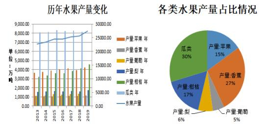 2019/20年度富士苹果入库以来,苹果产销均表现不佳,主要因水果市场处于低迷状态,橘类、瓜类价格均不高,导致对苹果替代效应明显。随着近几年水果种植面积的增长,其供应亦不断增加,2019年水果总产量达27400.84万吨,同期增长6.70%,其中苹果、香蕉、柑橘及瓜类产量占比均超15%,最近几年产量增幅较为明显的是柑橘和梨。基于水果市场在供应不断增长的背景下,突遇公共卫生事件的影响,苹果年度中销售旺季被延误,加之客商采购意愿不积极,导致冷库苹果出货压力居高。外围宏观环境不佳,出口低等级别苹果受限、居民购买力下降等居多消极面的情况下,对苹果的需求无疑是雪上加霜。