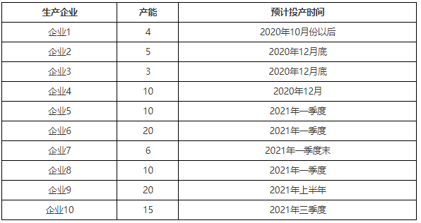 表 2020-2021年主要丁腈胶乳企业扩能时间表