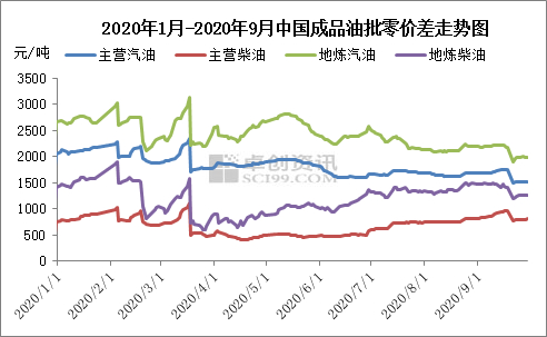 后期来看:利比亚复产以及二次疫情的反复,对原油市场仍存有利空。若后续利好跟进不足,原油价格成交重心仍有下移风险,国内成品油零售限价仍有下调可能。即将进入四季度,虽然北方农忙时节给予柴油需求一定支撑,但天气逐渐转冷,工矿、基建、建筑等的开工率面临再度回落。汽油方面,四季度假期偏少,出游旅行人数有限,汽油需求方面亦无明显支撑。同时今年冬天,国内亦面临疫情再度袭来的风险,虽然疫苗研发顺利消息频出,但短时间内大规模用疫苗仍有一定困难。综合考虑下,预计四季度国内成品油批发价格仍面临下调风险,国内成品油批零价差整体仍存有扩大可能。