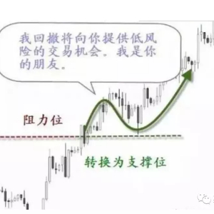 就支撑和阻力而言,当我们处在上升趋势中,回撤就是价格自高点下滑至前突破的阻力位附近。相反,在下降趋势中的反弹就是价格自低点回升至前跌破的支撑位附近。
