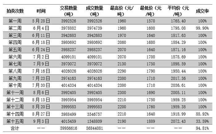 2.2 2020年临储玉米拍卖成交统计