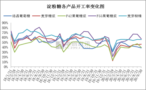 淀粉糖各产品开工率走势图