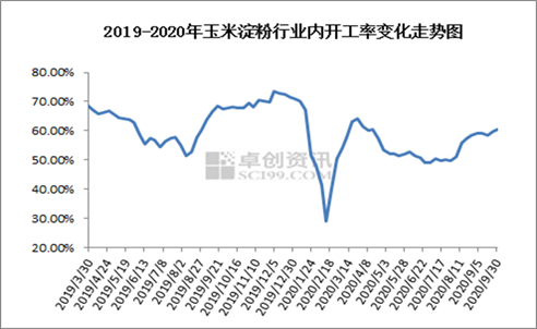玉米淀粉开工率走势图
