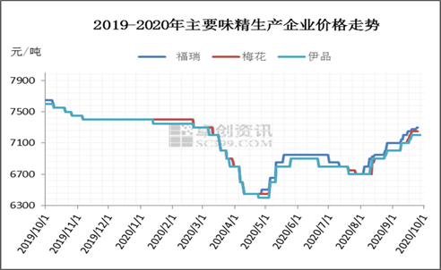 9月味精市场价格继续整体小幅上涨。上游企业开工正常,上游部分生产企业缓步提涨意向较强,其他企业小幅跟进,利润、新增产能、现金流及市场份额是主要考虑因素。9月需求好转,开学季院校消费恢复,金九银十及双节是常规需求旺季。因出货量一般,终端价格始终倒挂,同时考虑新增产能,下游心态不甚积极,对后期走势不甚乐观。截止到9月30日,大包装40目主流成交参考7200-7300元/吨,实单成交或与运输半径挂钩。