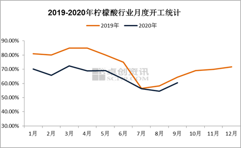 柠檬酸开工率走势图