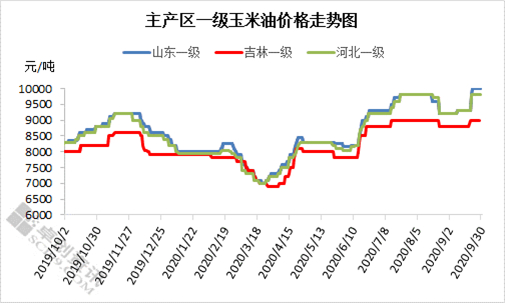 玉米油、胚芽粕:玉米油方面,因新玉米集中上市,十月原料价格或承压运行;且玉米油市场暂无备货需求,价格缺乏需求端支撑,因此卓创预计十月价格整体偏弱;但不乏市场提前备货可能,加之公共卫生事件仍有一定影响,因此卓创预计十月末价格或有反弹。玉米胚芽粕方面,原料玉米及胚芽价格或有走弱可能,给胚芽粕市场带来利空影响,加之十月饲料需求也有限,因此市场利空为主;但麸皮价格以及厂家货源偏紧提供支撑,因此卓创预计10月胚芽粕价格或偏弱震荡。