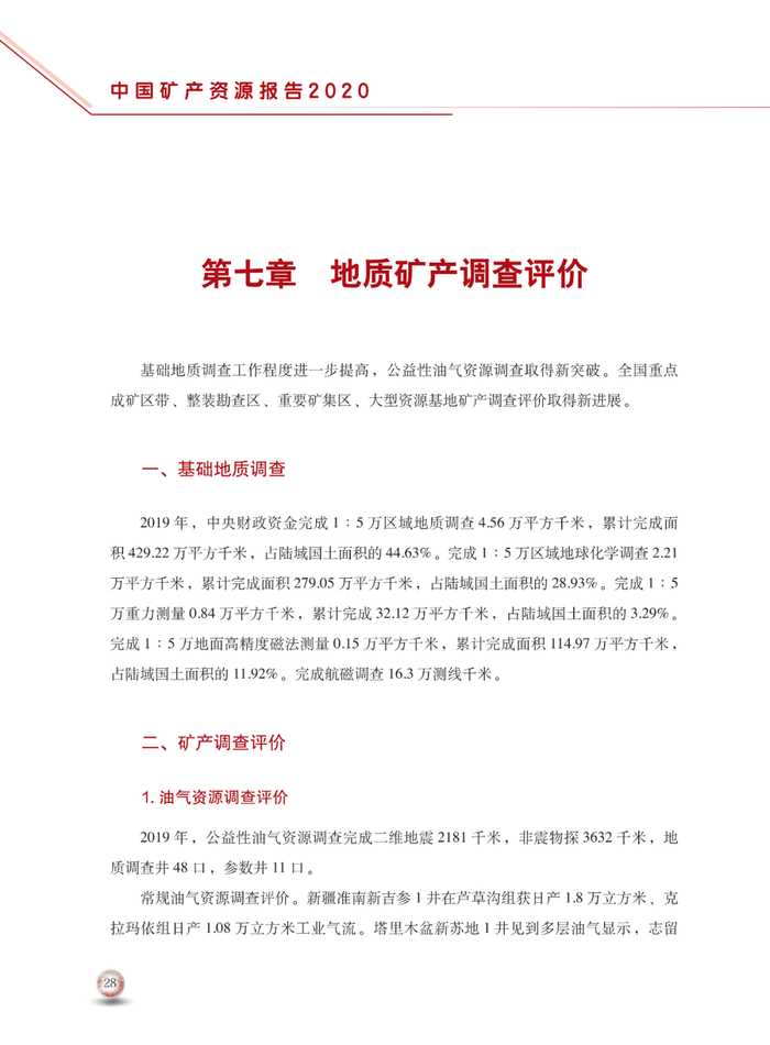 基础地质调查工作程度进一步提高,公益性油气资源调查取得新突破。全国重点成矿区带、整装勘查区、重要矿集区、大型资源基地矿产调查评价取得新进展。