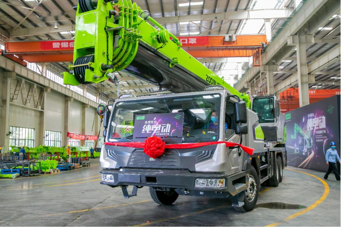 2020年5月7日,一台25吨极光绿纯电动汽车起重机在长沙中联重科泉塘工业园下线,这是中国以及全球首台纯电动汽车起重机。这款ZTC250N-EV汽车起重机采用目前最安全的、高储能密度LFP电池,上装及底盘全部“纯电动”,被行业人士赞誉为工程机械版“Z斯拉”。