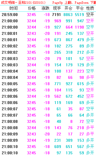 豆粕2101合约昨日9点前后成交明细