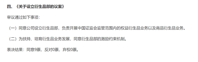 日前,国海证券发布公告称,国海证券第八届董事会第三十六次会议审议通过了《关于设立衍生品部的议案》,同意公司设立衍生品部,负责开展中国证监会监管范围内的权益衍生品业务以及商品衍生品业务。为扶持、培育衍生品业务发展,同意衍生品部的激励约束机制。