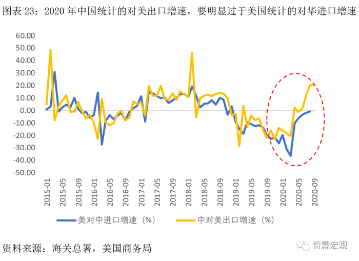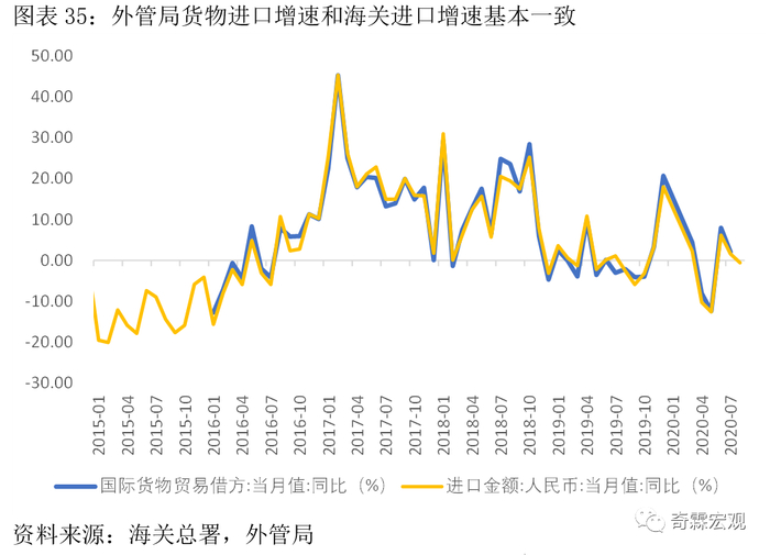 但总体而言,两者的增速走势非常接近。如果只考虑货物贸易的话,我们看时间序列更长的海关数据就够了。