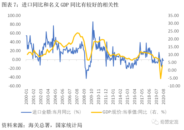 数据上可以看到,我国进口增速的波动周期,和名义GDP增速基本上是一致的。