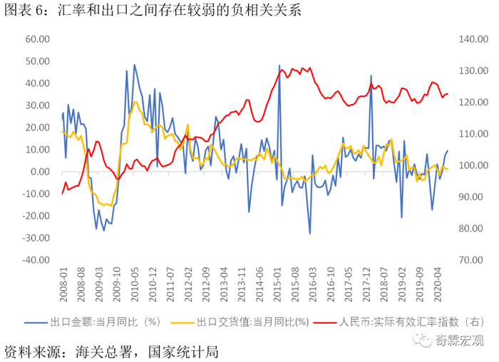 除了上述因素外,还有很多原因可能导致汇率和出口之间的弱相关性,我们这里不一一列举。