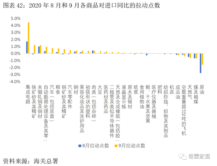 分商品来看,对9月进口增速回升贡献比较大的商品,主要有这么一些: