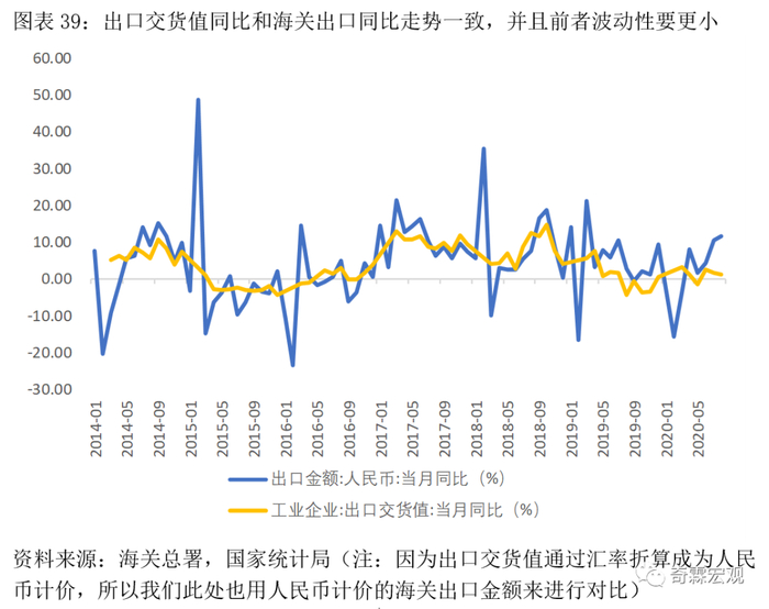 最后再补充说明一个比较特别的数据——工业企业出口交货值。它的数据质量也不错,也能很好地反映我国出口情况。