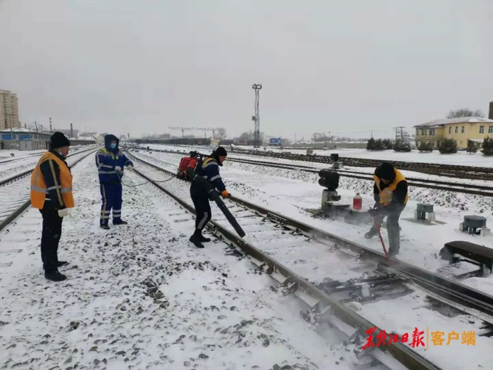 8日,我省部分地区迎来降雪天气。中国铁路哈尔滨局集团有限公司积极应对,第一时间组织人员清扫线路设备,做好站车服务,确保旅客安全有序出行。
