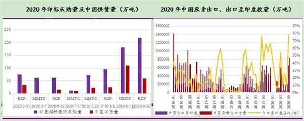 中国货源在印度尿素进口中扮演非常重要的角色。2020年1—9月中国出口尿素共293.06万吨,其中有128.63万吨口至印度。对中国来说,印度市场占据了我国尿素出口43.89%的市场份额。对印度来说,截至今年10月底印度共发布8轮国际尿素招标,最终确认采购的数量779万吨尿素,中国供货数量达到273.6万吨,占印度尿素进口货源的35%。