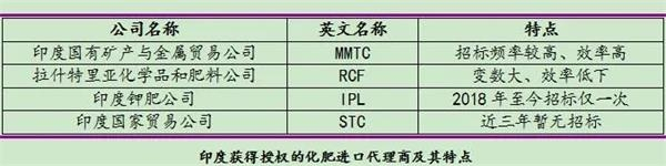 2013年印度政府提出解除民营企业直接从国际市场进口尿素的禁令,Tata化工、Zuari工业、Coramandel肥料等几家在海外或港口附近收购化肥生产设施的公司可直接与国际尿素供应商谈判,减少对国家指定进口渠道的依赖。同时,印度政府指定印度国有矿产与金属贸易公司(MMTC)、印度钾肥(IPL)和国家贸易公司(STC)3家国营进口渠道公司代表各分销商进口尿素。
