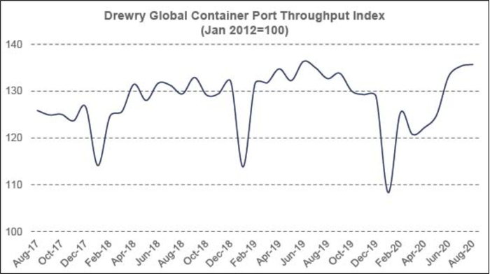 图表:drewry全球集装箱港口通量指数