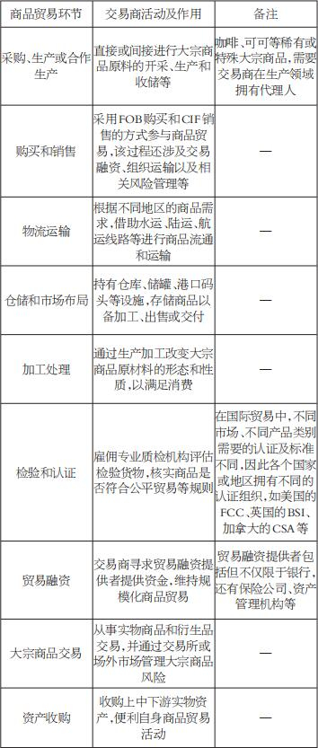 表为交易商活动贯穿商品贸易全生命周期