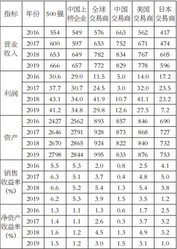 就我国而言,近年来全国上榜交易商的营业收入超过全球上榜交易商的平均水平,也超过500强总体和中国企业均值。然而,其平均利润及销售收益率仍远低于全球交易商及500强企业平均水平。