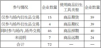表为500强中我国上市交易商使用商品衍生工具情况