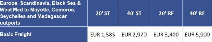 从1月1日起,这家位于马赛的承运人还将对干货,冷藏箱,敞开式集装箱,平板架和托运人拥有的集装箱(SOC)实施以下FAK费率。
