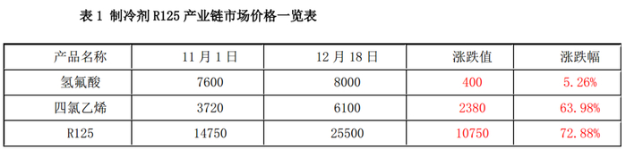 关键词:四氯乙烯 制冷剂R125 联动上涨 混配制冷剂 截止12.18日