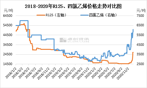 原料四氯乙烯与制冷剂R125走势相关性极强