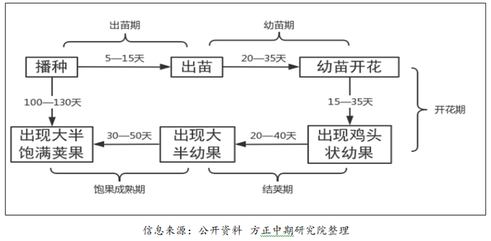 4、结荚期。从50%植株出现鸡头状幼果到50%植株出现饱果为结荚期。结荚期一般在20-40天,春播在30-40天,夏播在20-30天。