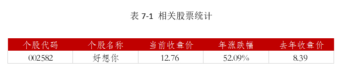 第七部分 相关股票价格及涨跌幅统计表