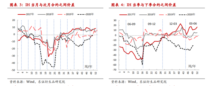 从2017年股指期货交易规则逐步常态化之后,展期价差表现出一定程度的季节性规律,而且IF、IH较IC更明显,这种规律理论上和标的指数的分红预期有关。展期价差的空间逐步收窄,年化的展期价差比率也逐年降低,但是今年因为疫情以及宽松刺激政策影响,股市本身波动就比较明显,而股指期货展期价差的波动也比以前更高。