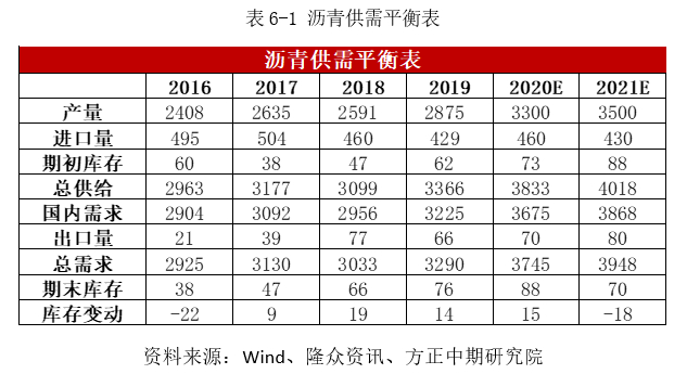 根据卓创资讯的统计,预计2021年国内新增沥青产能480万吨,其中凯意石化300万吨的常减压装置将在2021年3月份投产,而东方华龙、齐旺达以及鑫洲新材料未来也有投产计划,未来国内沥青产能整体将进一步扩张。