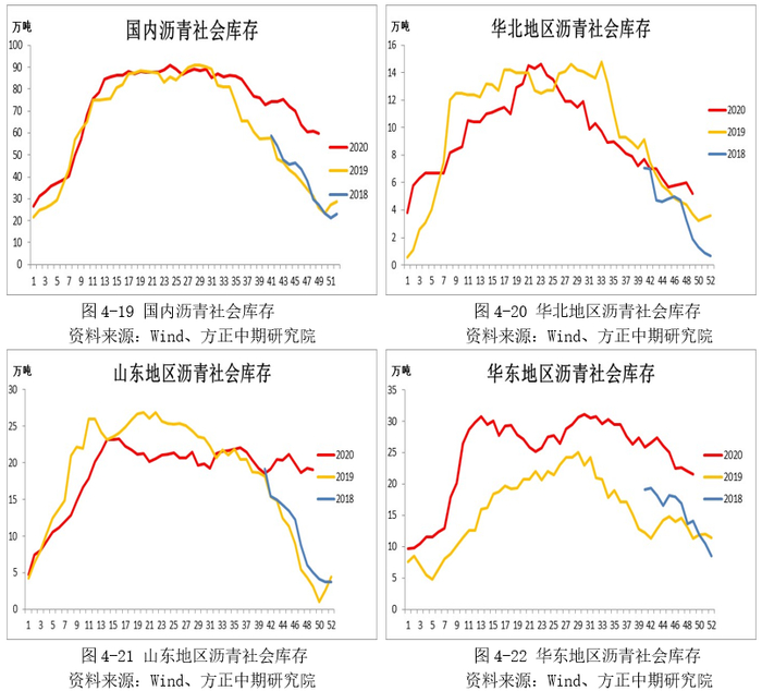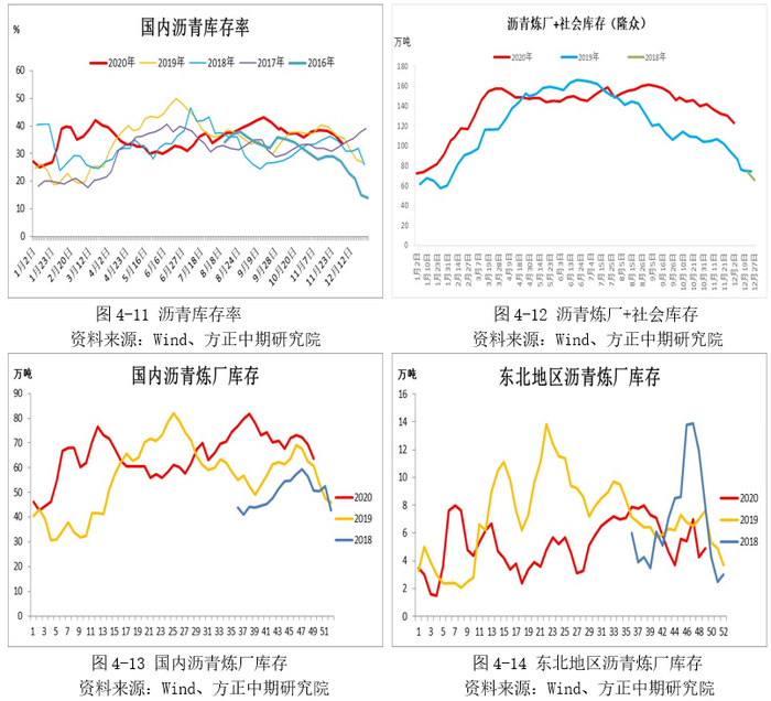 从季节性角度来看,进入12月份到次年2月份,由于炼厂开工率的下降以及冬储需求的增长,沥青库存有望进一步去化,但到次年3月份以后,随着冬储的结束以及刚需的淡季,沥青库存可能会再度累积。