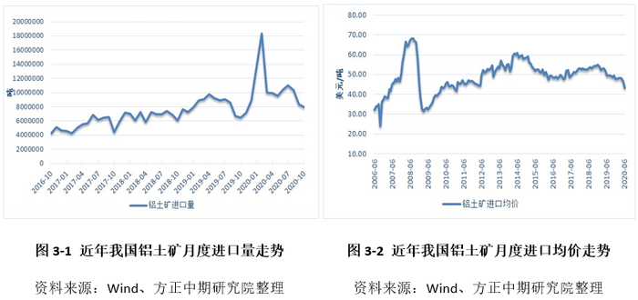 从全年的情况来看,铝土矿进口量呈现稳步增长的局面,虽然因为疫情以及当地气候原因,一季度以及8月和9月的数据环比下降。但是随着需求量的增长,以及国内铝土矿供给缺口的不断扩大,未来四季度以及2021年,铝土矿还将呈现增长的局面。另外值得注意的是,铝土矿的进口均价今年以来一直呈现持续走低的态势,未来随着几内亚等主产区的产量不断增加,铝土矿的价格将延续弱势,届时进口量还将进一步增长。