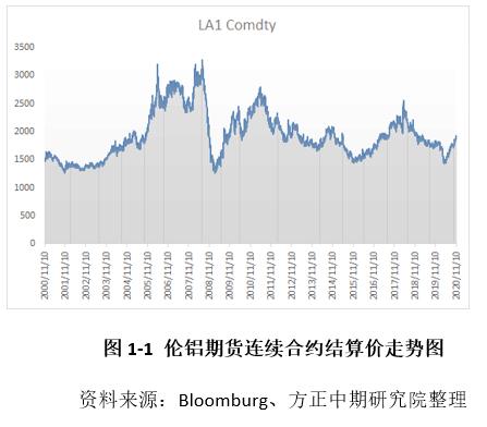 中期来看,近10年沪铝走势可以分为四个部分:2008年经济危机以后到2011年的价格恢复期,此间价格从谷底开始一路反弹。宏观经济导向是这一阶段的主要逻辑;第二阶段是2011年底开始到2015年底的这4年时间,期间铝价一路下行并且创出近十年新低,这一期间主要是供需错配的价值规律所致。低门槛大量涌入的中小型冶炼铝制造商成了价格持续下跌的元凶;第三阶段是2016年至2017年底的价格恢复期,在价格周期规律作用下铝价开始震荡反弹。叠加上供给侧改革去产能所带来的红利,铝价迎来了迅猛发展的恢复期,但是供需矛盾随着价格的上涨进一步发挥作用,第四阶段是从2017年底开始,铝价又进入了一个宽幅震荡的波动期。其中较为明显的波动就是2020年疫情所带来的深V反转。