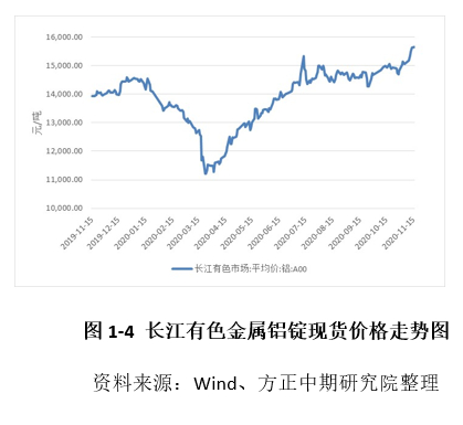整体来看,需求端汽车行业在高速发展,新能源汽车作为新兴国家重点扶持领域在不断扩张。越来越激烈的竞争将围绕车身轻量化展开;房地产市场还将迎来竣工潮的尾巴,新基建的发展也离不开铝材产品的支持;家用电器方面的持续快速发展以及更新换代也将是原铝终端消费向好的因素之一。而国外疫情阴影笼罩下的经济复苏也充满了不确定性风险,制造业回流以及“双循环”的需求使得明年国内确定性较强,国外则变数较大。我们预计,铝价在2021年上半年将先抑后扬,整体波动区间在13600-16000之间。