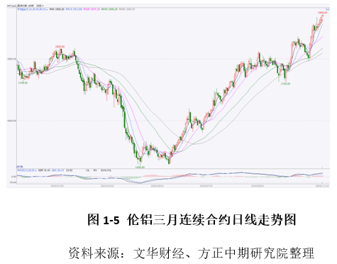 同沪铝一样,2020年伦铝也维持了先抑后扬的全年走势,只是同沪铝相比,伦铝底部时间更长,反弹相对滞后。这主要也是由于国外疫情扰动因素较大。伦铝在第一波疫情之后开始从底部反弹,虽然目前欧洲以及美洲依然被二次疫情困扰,但是在铝下游需求有所分化的情况下,原材料价格同沪铝联动已经形成了持续走高的态势。