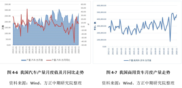 2020年,房地产行业随着疫情的影响经历了深V型反转,复工复产后大量的存量消费使得房地产市场的火热延续了整整三个季度。再加上18-19年较高的开工数据,也使得今年以及明年的铝材需求较为旺盛。另外,宏观面的政策刺激也是地产业复苏的重要动力之一。未来随着季节性需求减弱,预计房地产增速会小幅转缓,未来2021年大概率维持前高后低的态势。